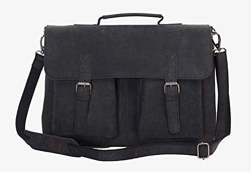 KomalC 16 Inch Leather briefcase Laptop Messenger Bags for Men and Women Best Office Satchel Bag(Charcoal Black)