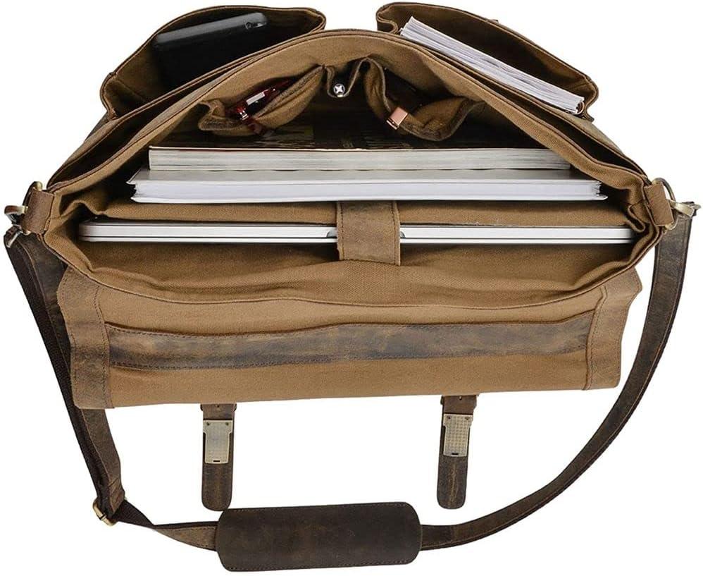 KomalC 16 Inch Leather briefcase Laptop Messenger Bags for Men and Women Best Office Satchel Bag(Distressed Tan)
