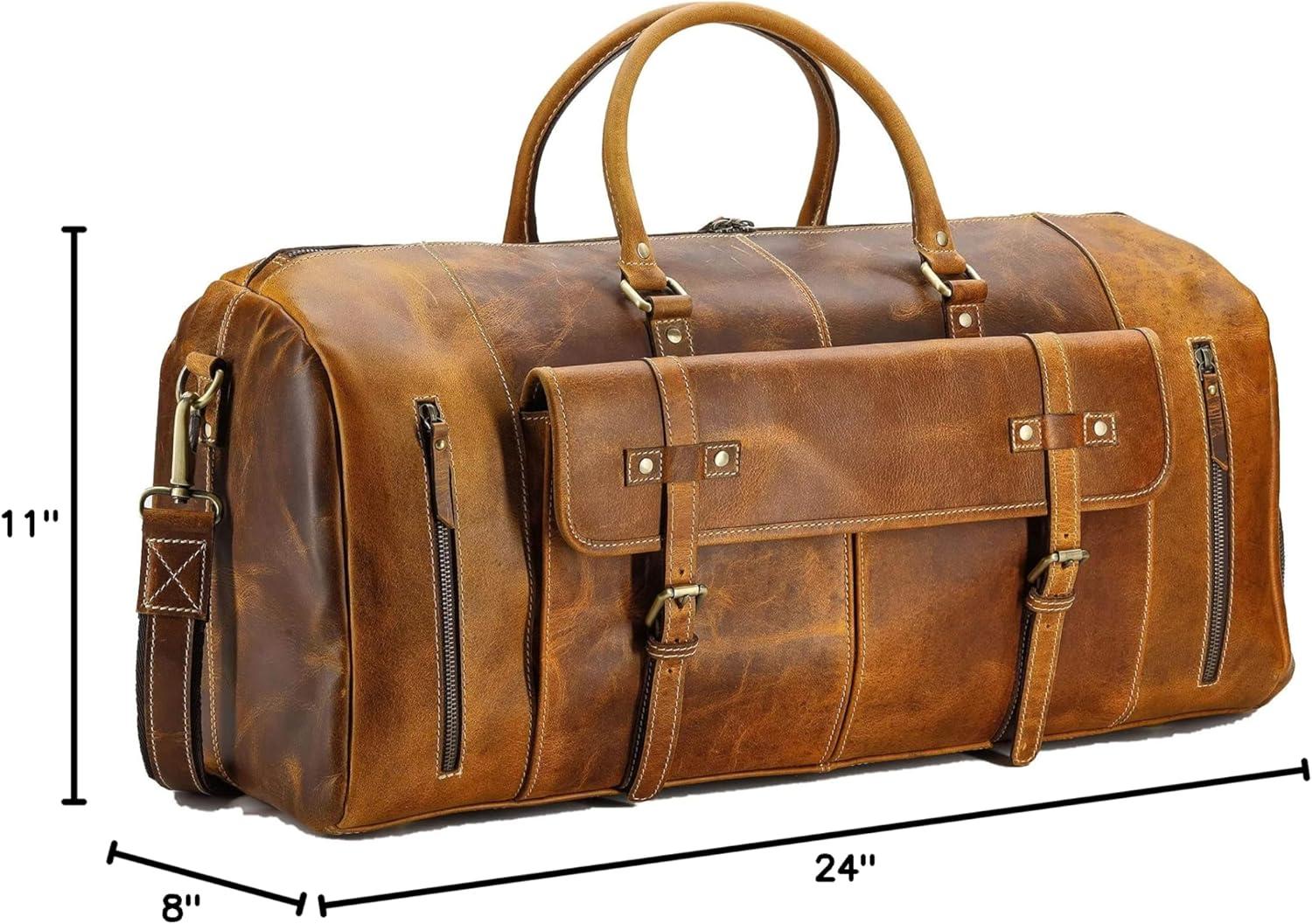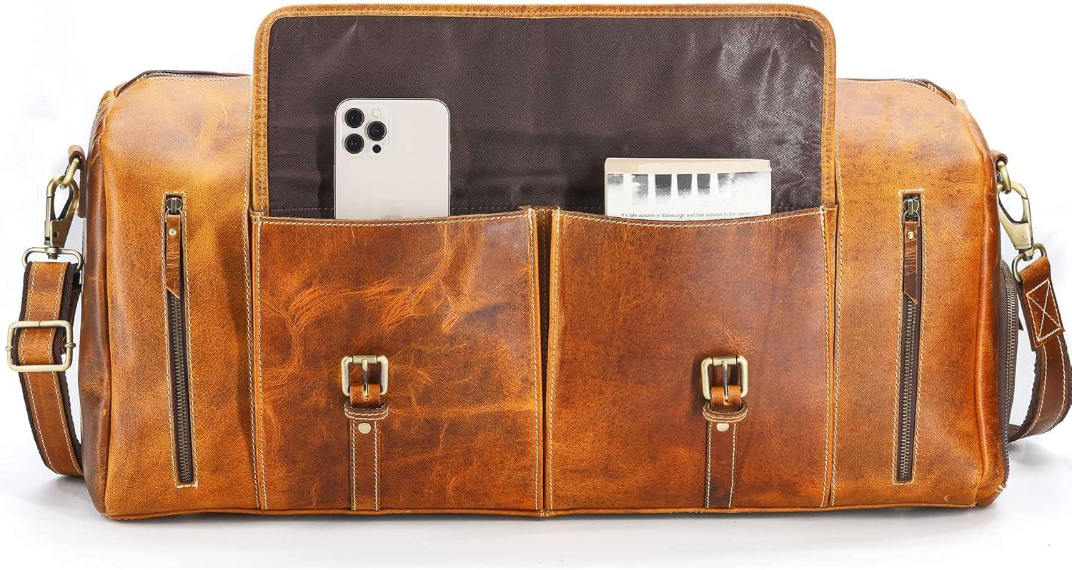 Premium Quality Craftsmanship: Crafted from the finest full-grain buffalo leather, this bag is hand-made by experienced artisans. Its vintage-inspired design and distressed finish provide a luxurious and classy appearance.