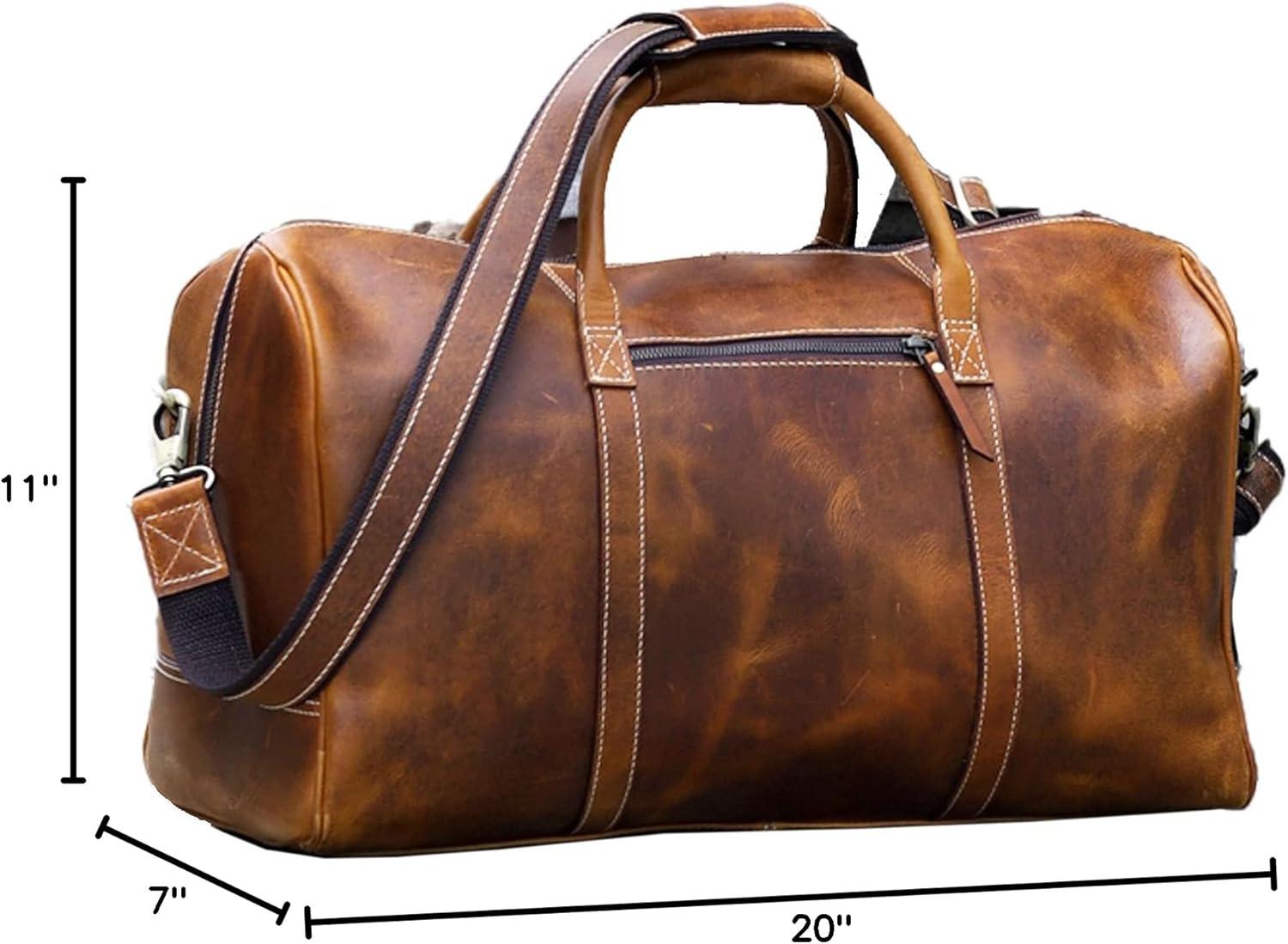 KomalC Duffel Bags for Men and Women Full Grain Leather Travel Overnight Weekend Bags, Sports Gym Duffel (20 Inch)(Distressed Tan)