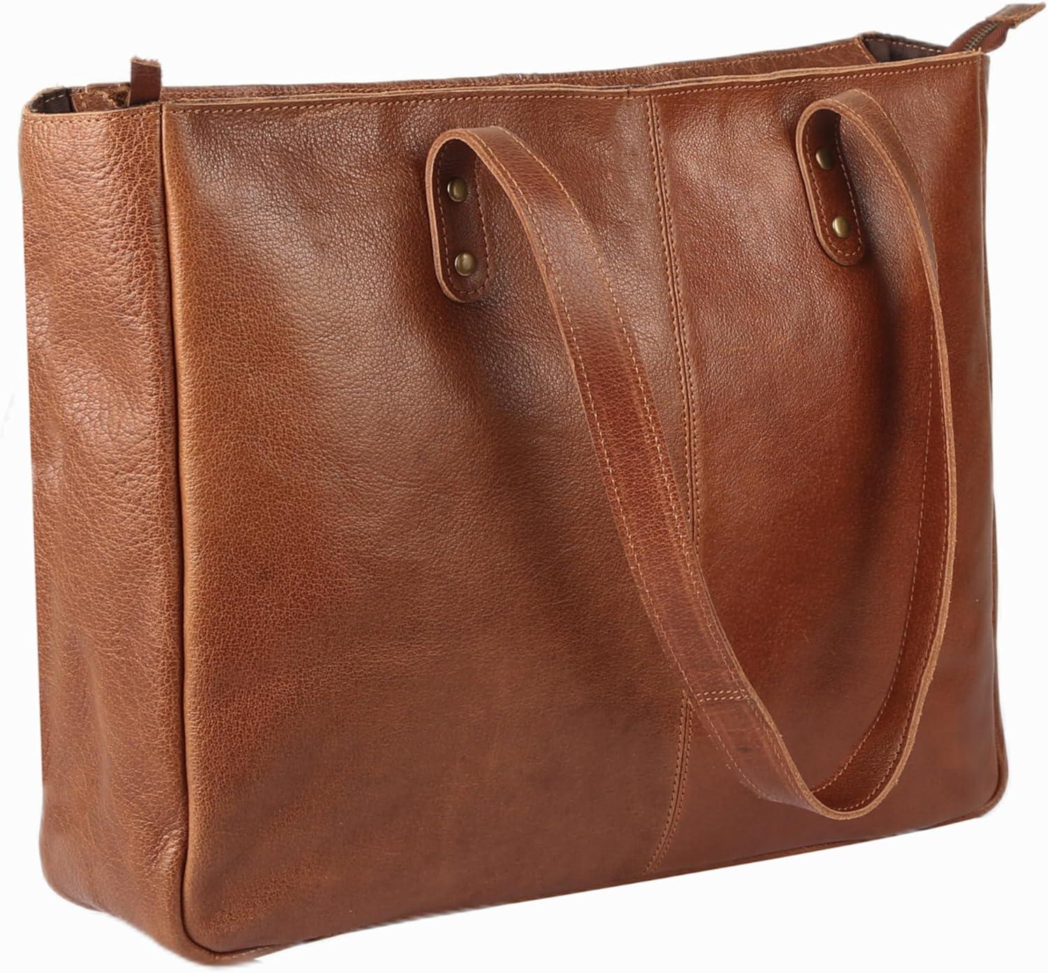 Leather tote bags are the epitome of style and practicality, offering a perfect blend of sophistication and everyday utility. This leather tote bag has sufficient space to carry your everyday essentials and laptop. Our full-grain leather totes are ideal for those seeking a durable, high-quality bag that combines functionality with timeless elegance. Whether you prefer a sleek, minimalist design or a more textured, tan look, this leather tote bag is a must-have addition to your collection.