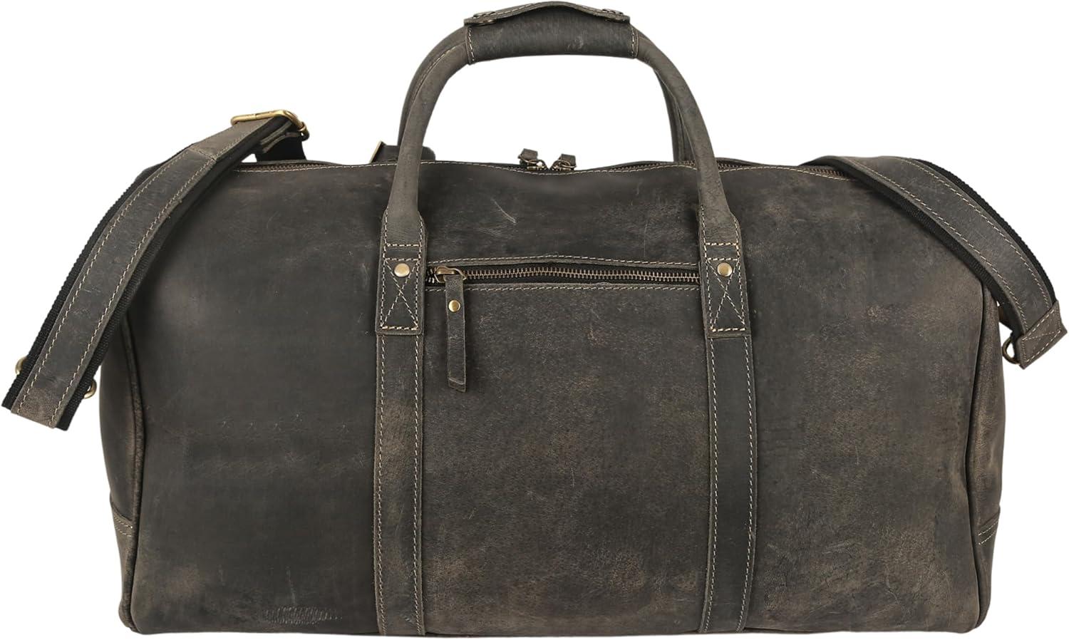 imageKomalC Leather Travel Duffel Bags for Men and Women Full Grain Leather Overnight Weekend Leather Bags Sports Gym DuffleBuffalo Distressed Tan