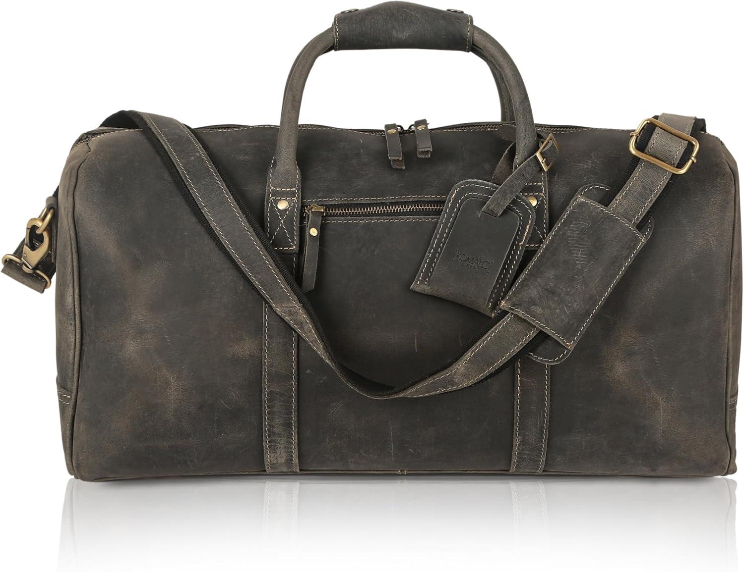 KomalC Leather Travel Duffel Bags for Men and Women Full Grain Leather Overnight Weekend Leather Bags Sports Gym Duffle